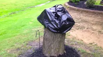 Haar man heeft deze boom omgehakt. Twee weken later ziet ze een kunstwerk als ze de vuilniszak verwijdert.