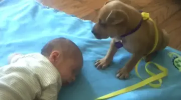 Moeder filmt verbazingwekkende reactie van puppy op slapende baby!