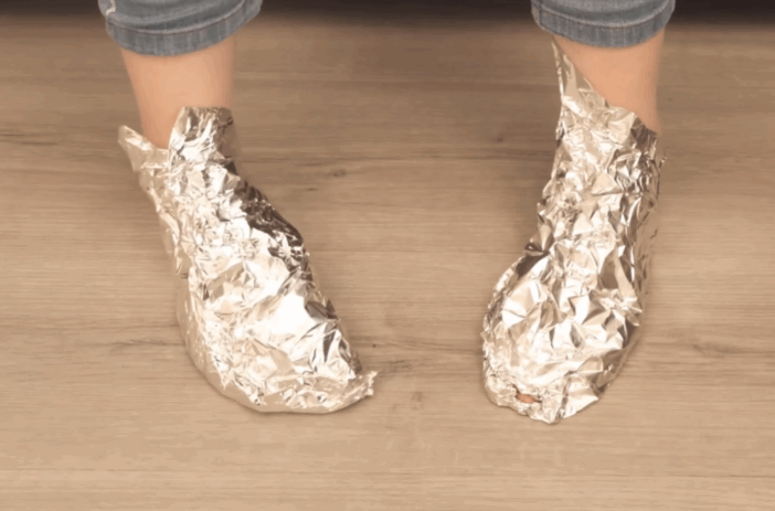 Knip een ruim stuk aluminiumfolie af en wikkel het losjes om elke voet.
