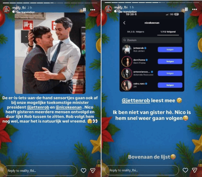 Kort nadat RealityFBI hier aandacht aan had besteed, gebeurde er iets opvallends: Nicolás bleek Jetten ineens weer te volgen. Hij stond zelfs bovenaan de lijst met accounts die Nicolás recent heeft toegevoegd. RealityFBI laat weten niet zomaar te geloven dat dit toeval is.