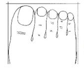 Tenslotte is er de ‘uitgestrekte’ voet, gekenmerkt door een relatief lange voet met lichtelijk gekruiste tenen. Deze voetvorm wordt geassocieerd met een introverte persoonlijkheid. Mensen met deze voetvorm houden hun geheimen graag voor zichzelf en brengen liever niet te veel tijd door in gezelschap van anderen. Deze groep mensen heeft ook vaak last van stemmingswisselingen die onvoorspelbaar kunnen zijn.