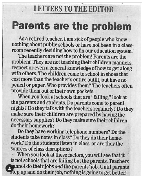 Docenten moeten zich niet ontfutseld zien met verantwoordelijkheden die eigenlijk aan ouders toebehoren. Verandering in het onderwijs kan alleen worden bewerkstelligd wanneer ouders hun verantwoordelijkheden ook echt op zich nemen.”