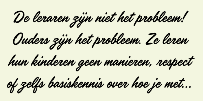 Docenten moeten zich niet ontfutseld zien met verantwoordelijkheden die eigenlijk aan ouders toebehoren. Verandering in het onderwijs kan alleen worden bewerkstelligd wanneer ouders hun verantwoordelijkheden ook echt op zich nemen.”