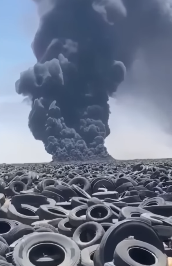 Bij Al Jahra, aan de rand van de woestijn, ligt een van de grootste bandenkerkhoven ter wereld. De beelden zijn bizar: eindeloze stapels rubber, met daarboven een donkere, verstikkende rookpluim die tot ver in de lucht reikt. Als je het ziet, voelt het alsof de grond zelf brandt. Het is geen eenmalige brandstapel, maar een terugkerend scenario op industriële schaal.