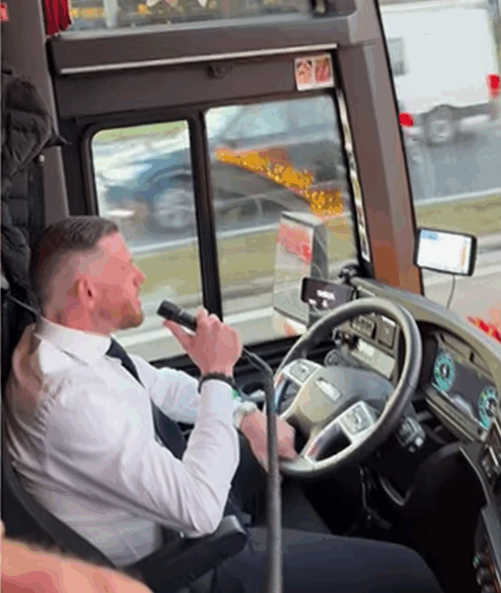 Volgens hem kwam het allemaal heel spontaan tot stand. “Passagiers hadden al gehoord dat ik graag zing. Tijdens een file zei iemand: ‘Toe dan, laat eens wat horen.’ Het leek me wel een leuk moment om de sfeer wat op te vrolijken.”