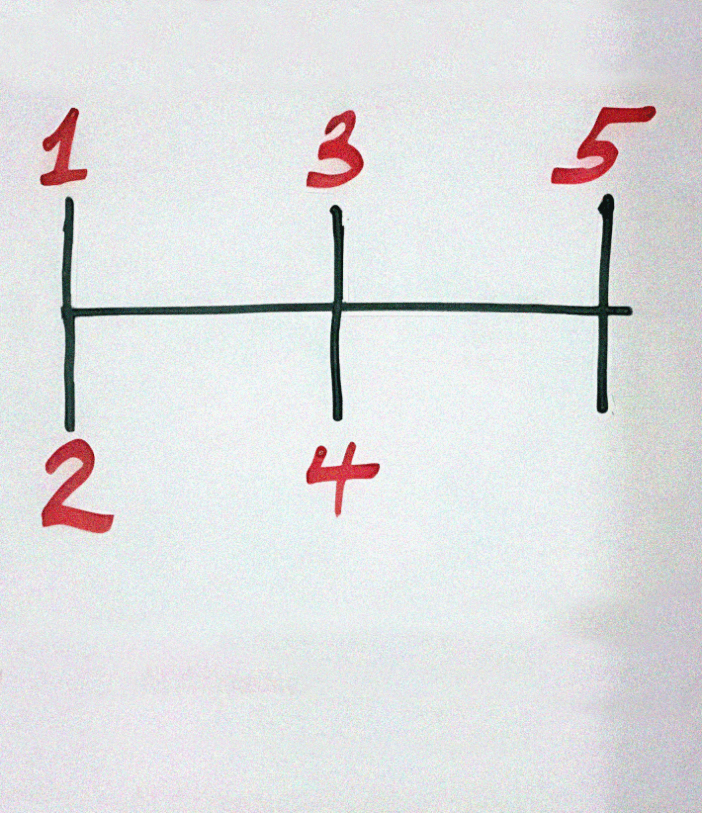 Sommige raadsels lijken eenvoudig, maar worden pas interessant zodra je herkent waar het beeld eigenlijk naar verwijst. Op het eerste gezicht lijkt de tekening slechts een reeks lijnen met cijfers eromheen: 1 en 2 links, 3 en 4 in het midden, en een 5 rechtsboven. Maar wie een handgeschakelde auto ooit heeft gereden, ziet meteen dat dit patroon precies overeenkomt met de indeling van een klassieke versnellingsbak.