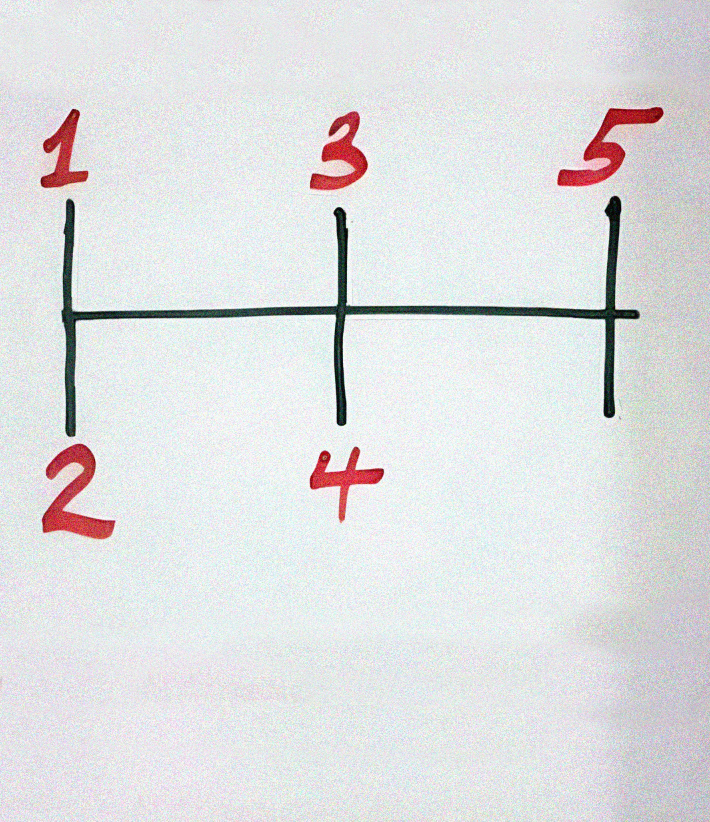 Sommige raadsels lijken eenvoudig, maar worden pas interessant zodra je herkent waar het beeld eigenlijk naar verwijst. Op het eerste gezicht lijkt de tekening slechts een reeks lijnen met cijfers eromheen: 1 en 2 links, 3 en 4 in het midden, en een 5 rechtsboven. Maar wie een handgeschakelde auto ooit heeft gereden, ziet meteen dat dit patroon precies overeenkomt met de indeling van een klassieke versnellingsbak.