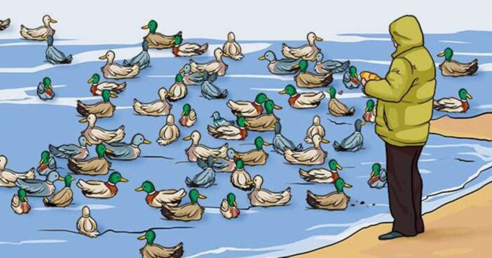 Puzzels kunnen talloze vormen aannemen. Het kan een wiskundige vergelijking zijn, die je je misschien uit je schooltijd herinnert, of het kan een raadsel zijn. Dankzij het internet hebben we toegang tot een oneindig aantal van dergelijke uitdagingen vanuit het comfort van onze eigen woningen. Vandaag willen we een speciaal type puzzel met je delen dat op het internet veel bijval heeft gekregen.Onze uitdaging van vandaag betreft een dergelijke afbeelding. Neem een kijkje in de bovenstaande foto. Op de foto zie je een persoon die eenden voert aan een meer, maar er is iets ongewoons aan deze foto. Kun je zien wat er niet klopt?