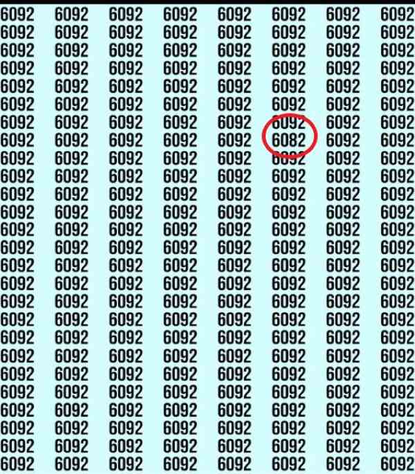 In de onderstaande puzzel moet je het nepgetal vinden dat zich verstopt in de reeks van het getal 6092.