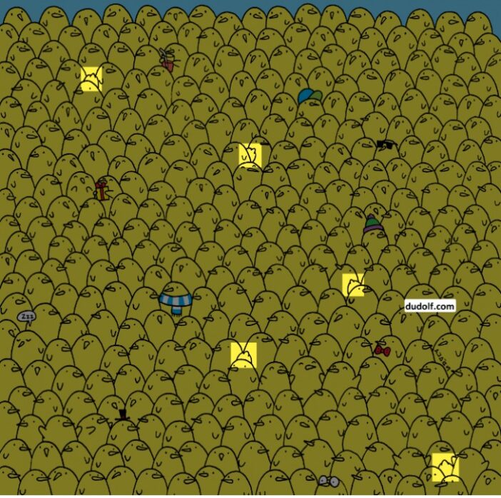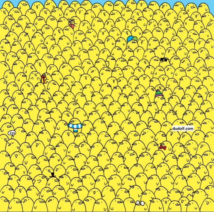 Visuele spellen en optische illusies zijn ontegensprekelijk interessant, uitdagend voor zowel de geest als het gezichtsvermogen. Ze zijn speciaal ontworpen met een variërende moeilijkheidsgraad om uit te dagen en neigen ernaar ons te prikkelen om antwoorden te zoeken met zo min mogelijke tijdverspilling. In vele verdienste, is het doel om de puzzel te ontrafelen in de kortste tijd, een prettige oefening die veel gebruikers graag exploreren en uitwisselen. In dit deel zoomen we in op een afbeelding van tekenaar Gergely Dudás. De afbeelding toont een grote groep kuikens, maar vijf citroenen zijn er ook ergens tussenin verwerkt.