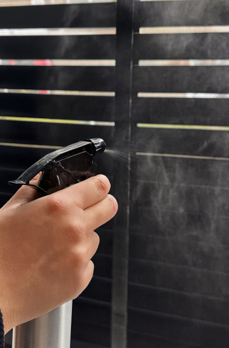 Spray het mengsel vervolgens lichtjes over je lamellen — niet te nat, gewoon een fijne nevel is genoeg. Laat het kort drogen en geniet van het resultaat: lamellen die langer stofvrij blijven én heerlijk ruiken.