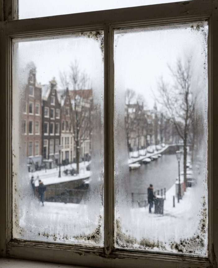 Het klinkt paradoxaal, maar juist de koude buitenlucht helpt. Koude lucht kan minder waterdamp bevatten dan warme. Zodra die koude, droge lucht je huis binnenkomt en opwarmt, daalt de relatieve luchtvochtigheid binnen. Dat betekent minder condens op koude oppervlakken en dus minder ideale omstandigheden voor schimmel.