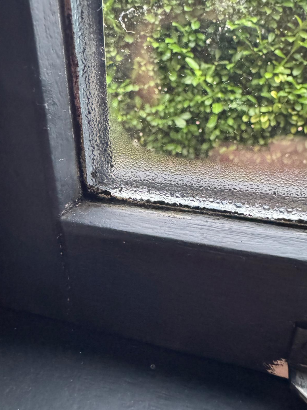 Laat je die druppels op de vensterbank staan, dan krijgt schimmel vrij spel. Je ziet eerst kleine zwarte puntjes in de hoeken, daarna volgen een muffe geur en uiteindelijk beschadigde kitranden of houtwerk.